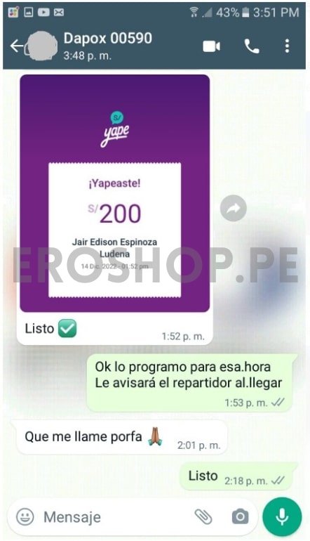 Estos son algunos de los excelentes comentarios de nuestros clientes de largo tiempo. Todos los datos personales han sido borrados. Si aparece algún nombre en fotos de Yape o Transferencias corresponde al titular de nuestra tienda.